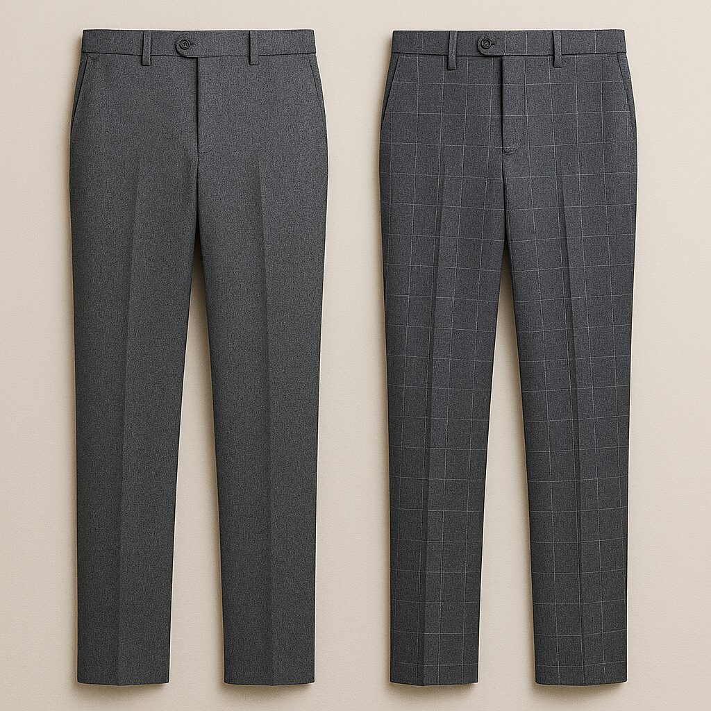 ✅ スーツのスラックスを使う場合は、光沢と柄に注意!