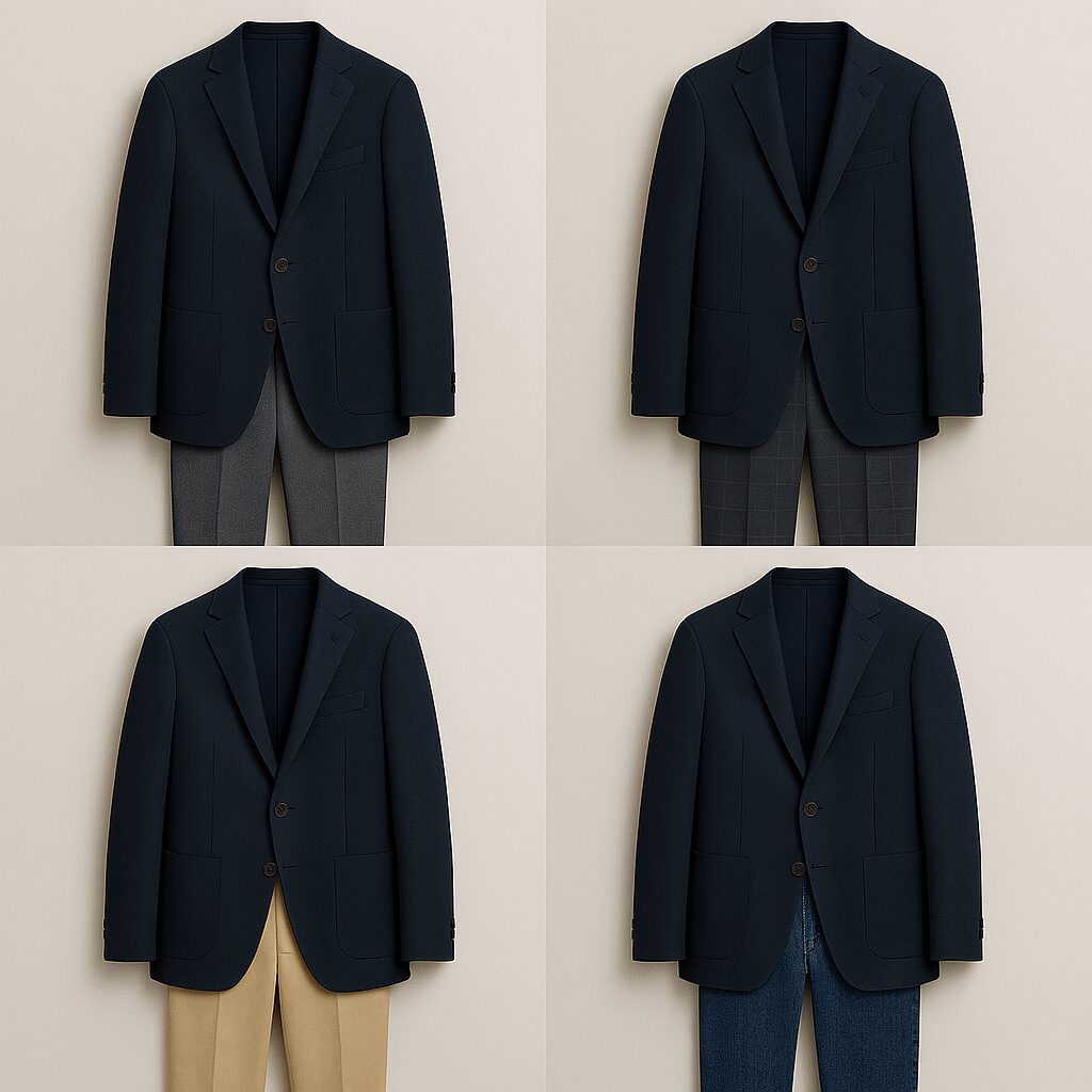 スーツのジャケットとカジュアルジャケットでは印象が全く違いますので、ネイビーのスーツのジャケットを流用するよりもカジュアル用のジャケットは別で用意する方がおすすめです。