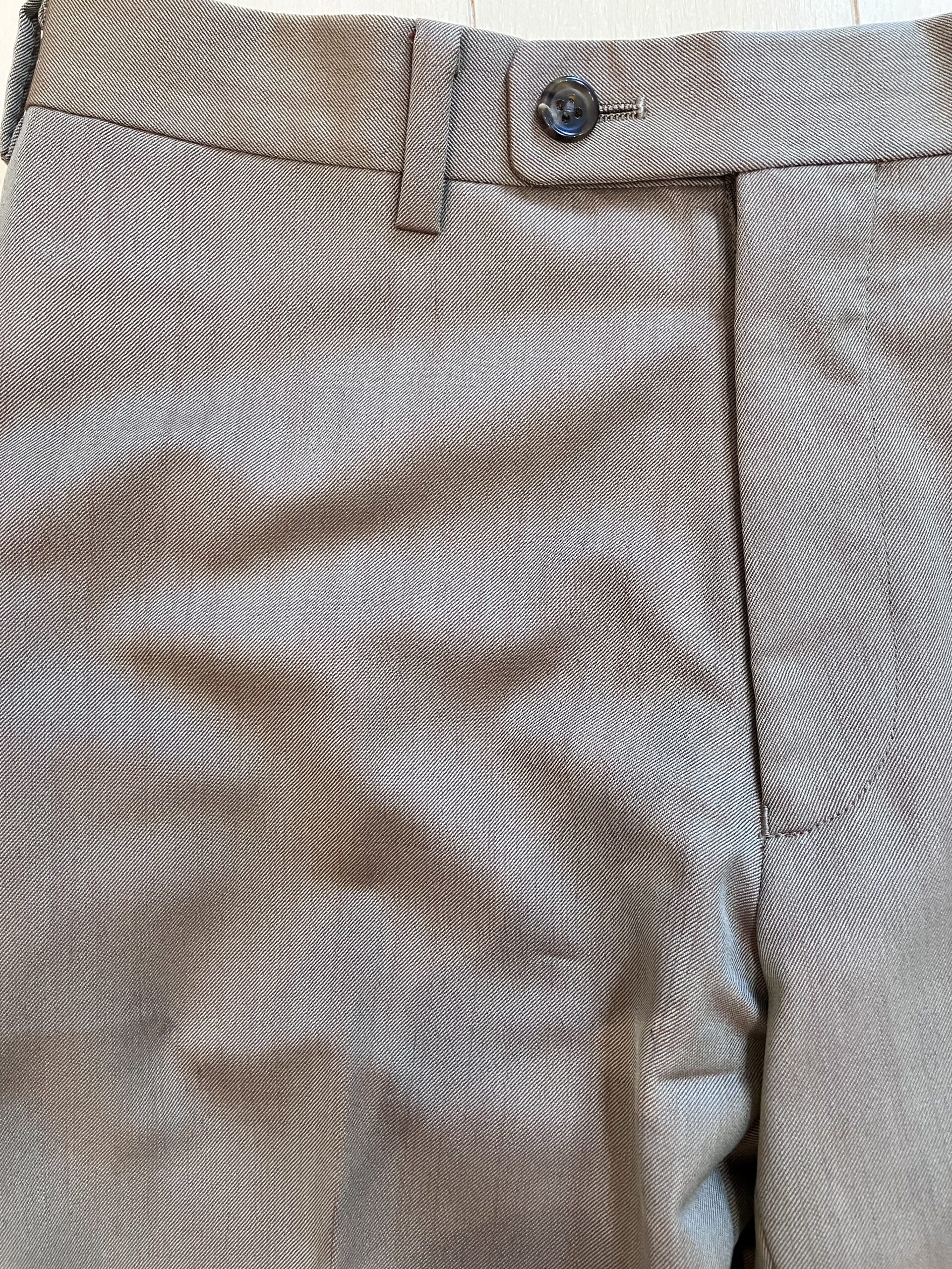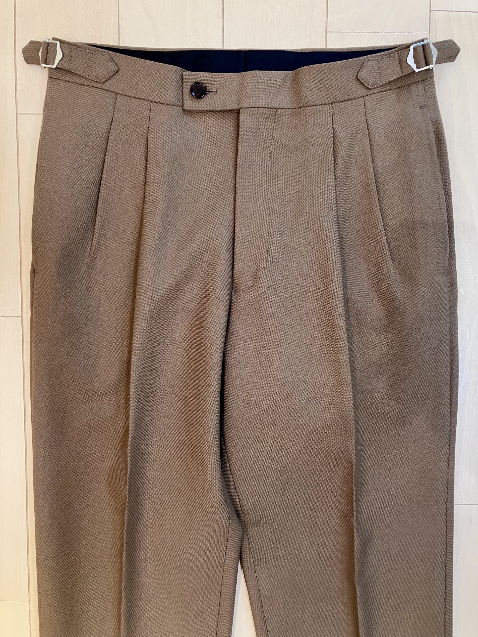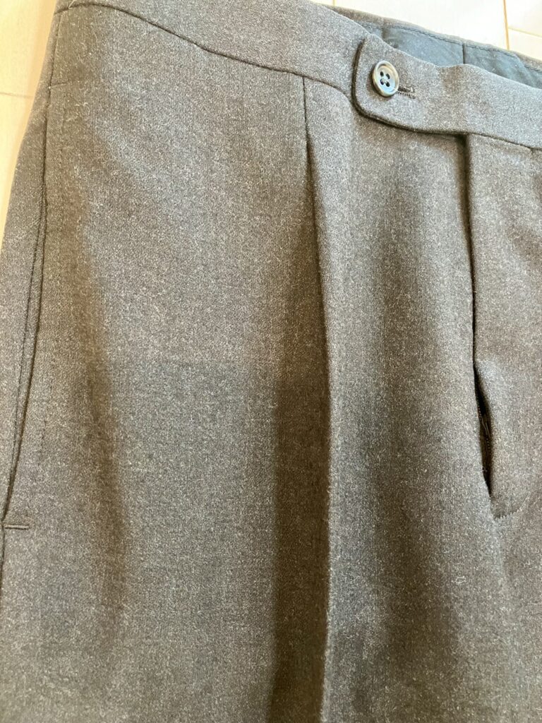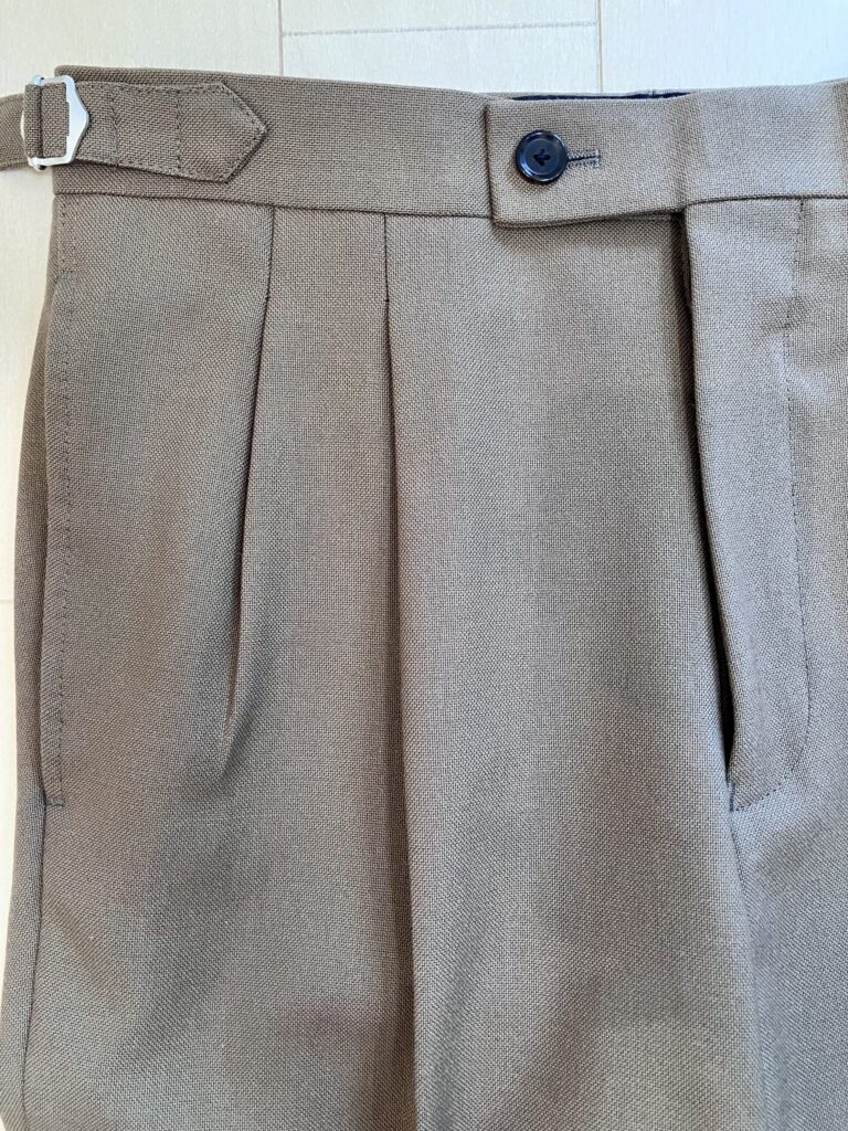 ノータックのスラックスの参考画像です。写真からは分かりにくいかもしれませんが、ノータックのスラックスの方がすっきりとした印象を与えやすいです。