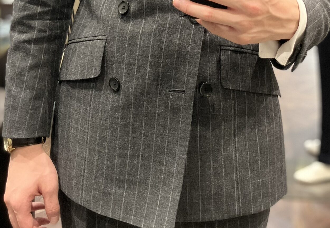 フラップ付きポケットは日常のスーツには便利ですが、フォーマルなスーツはシンプルなフラップ無しポケットを選ぶことで、より格調高く、正しい着こなしになります。
