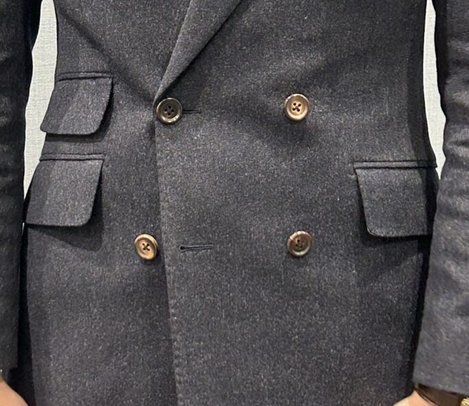 玉縁ポケットはジャケットの腰ポケットを生地で縁取ったポケットです。