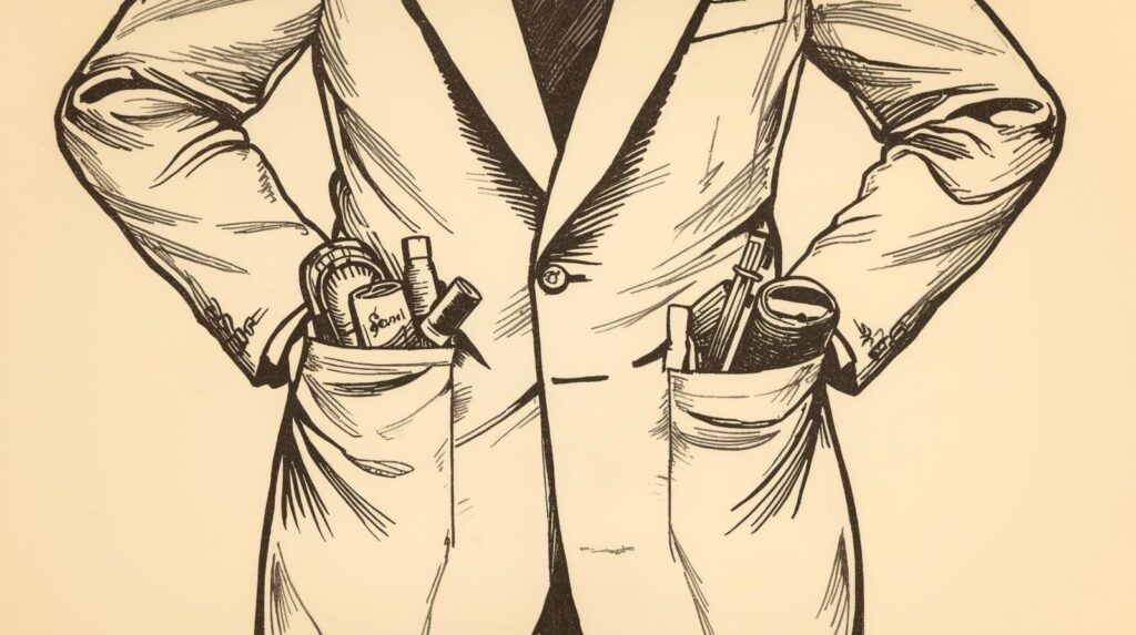 スーツを着る際は、ポケットに入れるものを最小限に抑え、スマートなシルエットを保つことを意識しましょう。そうすることで、ジャケットシルエットの美しさが際立ち、より洗練されたスーツスタイルを楽しむことができます。