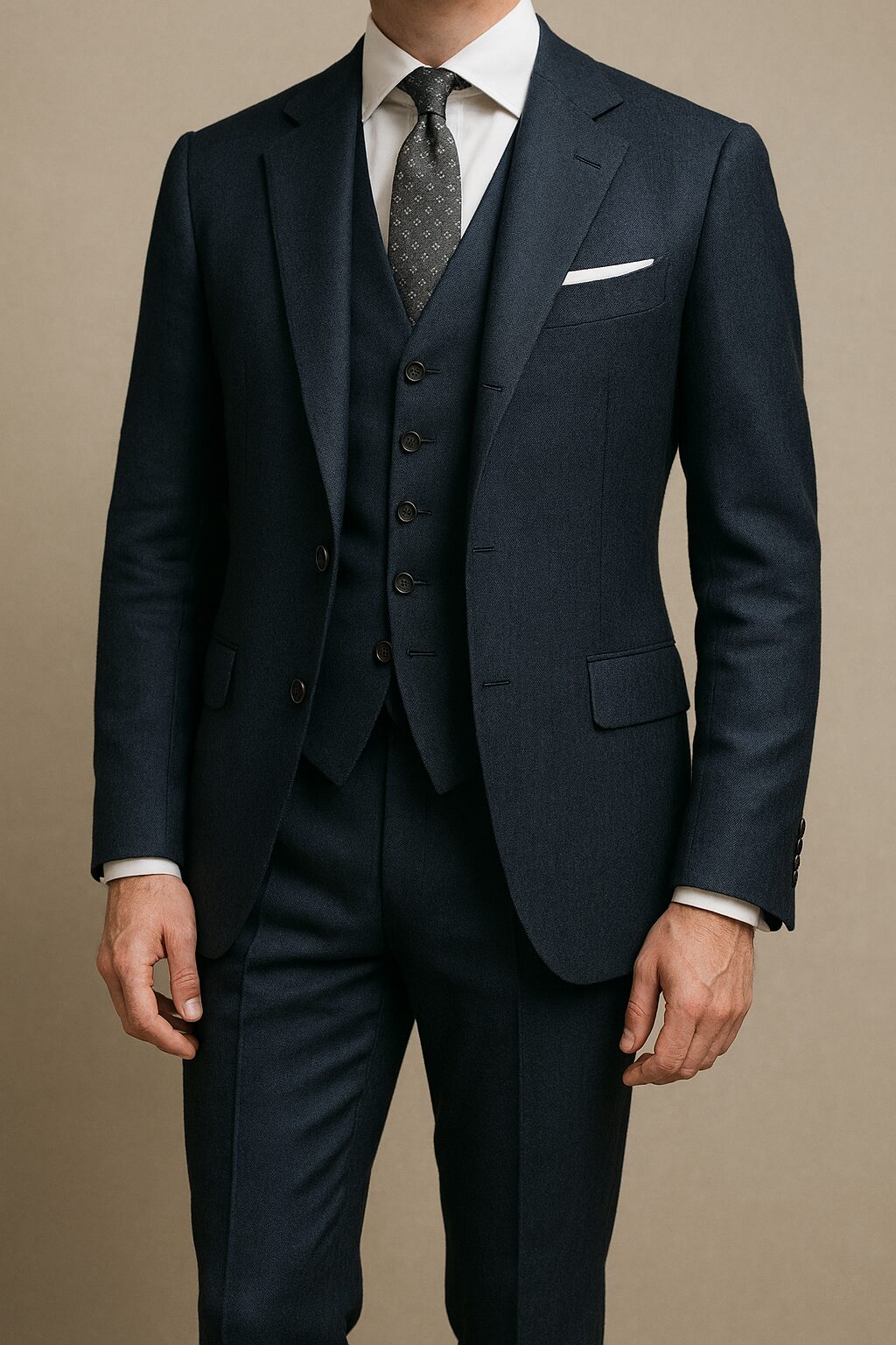 特に結婚式のような華やかな場では、スリーピーススタイルが品よく映えます。